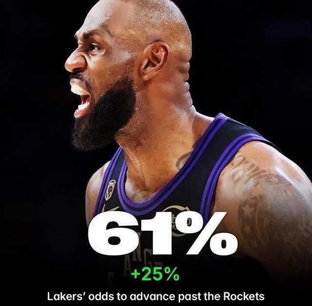 今日,NBA数据网站也给出了对于本轮系列赛的全新预测,湖人晋级概率已经从赛前的25%,直接飙升到了61%。