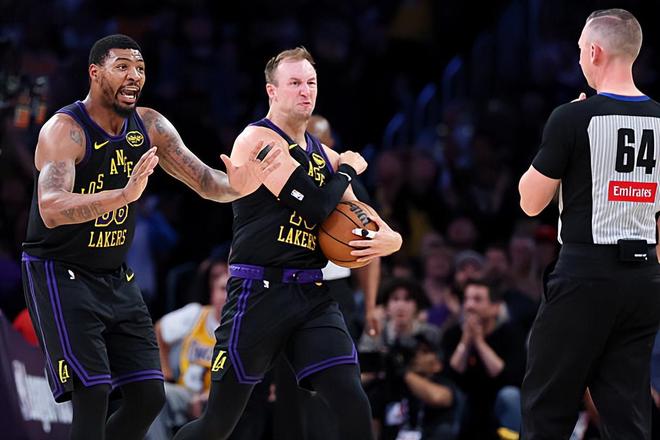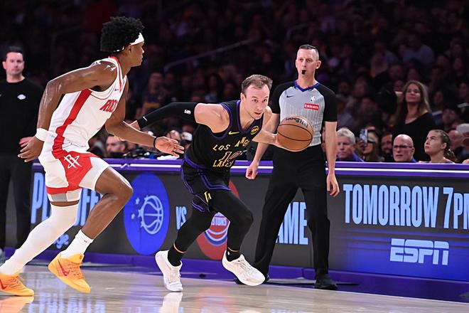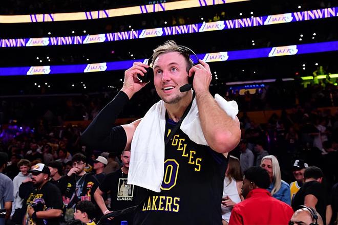 本场比赛中,湖人的先发控卫卢克-肯纳德(Luke Kennard)继续着自己的强势表现。肯纳德全场出场41分58秒,投篮13中8,三分线外6中3,罚球4中4,得到了23分6篮板2助攻3抢断的数据,还有2次失误和1次犯规,正负值为+2。肯纳德在进攻端继续着自己出色的手感,他也展现出了自己全面的得分能力,他不仅能够利用突破完成得分,他在外线投篮方面的稳定性也依然出色,他也是通过各种方式拿下了大量的分数,在进攻端起到了关键的作用。不仅如此,肯纳德在防守端也是延续了自己的强势表现,他的个人防守能力同样是非常出色的水平,甚至可以说我们都没法想象他在防守端的能力竟然如此出色。肯纳德又一次打出了攻守兼备的表现,这也为球队的胜利做出了巨大的贡献。