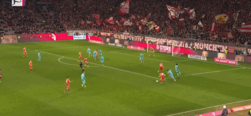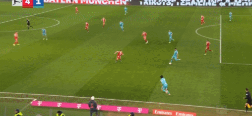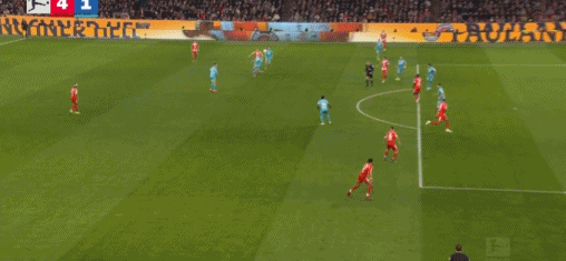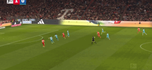 第45+2分钟,凯恩送助攻,迪亚斯破门,拜仁3-1霍芬海姆