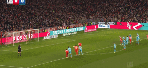 第45分钟,迪亚斯再造点,凯恩点射双响,拜仁2-1霍芬海姆