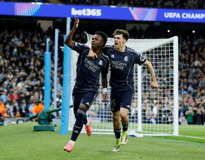 同样是首回合0-3落败,英超豪门曼城就没有这么幸运了。与皇马的二番战,曼城在开场17分钟就被判罚了红点套餐,比赛的悬念在这个关键判罚后,也提前被杀死了。维尼修斯在上下半场各入一球,曼城则是由哈兰德,打入了本队在两回合比赛的唯一一粒进球。最终皇马以2-1完成了对曼城的双杀,总比分5-1淘汰对手,轻松晋级八强。
